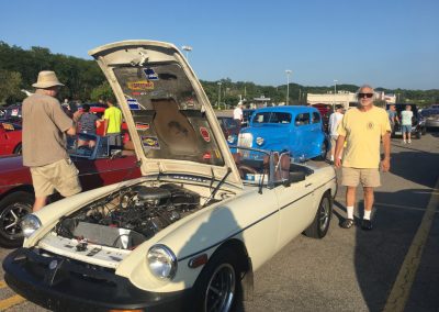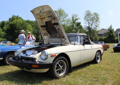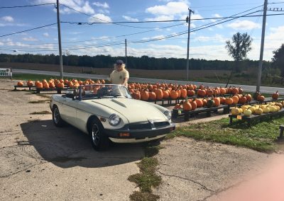 The car is a 1975 MGB with a 1963 Oldsmobile 215cu (3.5L) V8. Currently fitted with a Holley Sniper EFI throttle body injection. It’s is almost white – Chrysler 300 Vanilla. It has a Monza Vega positraction rear end with a T5 GM transmission, dual exhaust. It’s been dismantled and rebuilt twice.