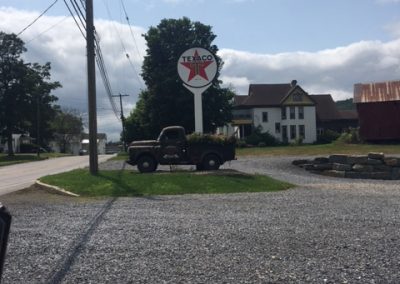 There was a Midas shop across the street. I went over there and the counter guy says they could help me out but had nothing open til the 21st of the month. That obviously wouldn’t work. Asked him to recommend a place and across the highway from them was Pepp Motors – no relation to Pep Boys they pointed out. It was just what I needed – a regular garage with guys that think on their feet. They put it on the lift and could see the problem. I asked if they could spot weld the pipe to the header and they said “OK” and did it. Up on the lift I took a look and it looked pretty good. Go it down and we went about our day. But – it didn’t take much of a bump for the car to scrape – sounding quite terrible.
