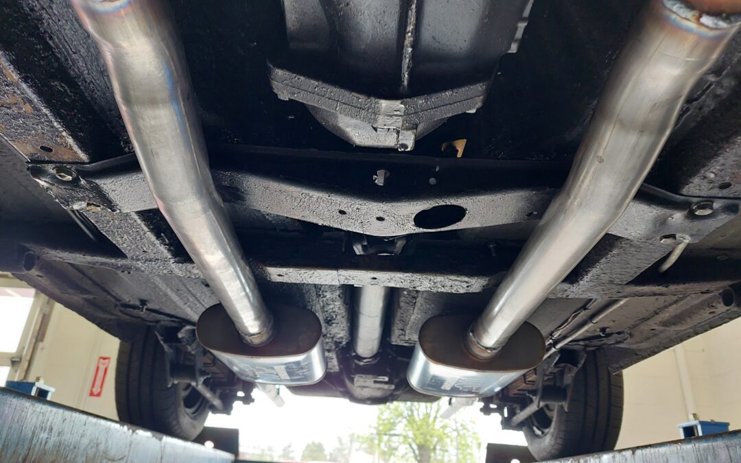 I looked under the car and we had about 2″ of clarence between the one exhaust pipe and ground. That wouldn’t work – the roads where real bad around here and we scraped way too many times. We went back to the shop and I asked if they could take another look and see what we could do about it. They said it would have to wait until morning because two of the guys had left for the day. I didn’t have many choices so morning it was.
