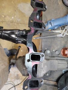 So this time I ordered RV8 headers from TSI. Took almost 2 months to get them but they came in and they look very good. Heavier material than the huggers were. Also all the headers I found available hugger or not were for the Buick not the Olds. The Olds heads have 5 bolts per cylinder the Buick has 4 but more importantly the bolts on the Olds are proud of the exhaust plane while on the Buick they are recessed. I had to grind the stabilizer plate so it would fit. Here’s some pics: