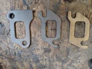 The gasket on the left was one right over from getting the last set from Parts Geek. The one on the left is what came with the new header. I bit of modification made them much easier to put in.