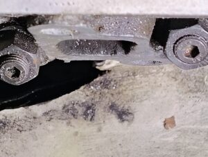 Also had to move the front brake line – it originally was exactly behind the collector and an 1/8″ behind – probably not good to boil the brake fluid.